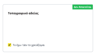 Αν έχετε ήδη κάποιο αρχείο στα χέρια σας, ή απλά δεν το χρειάζεστε, επιλέξετε 'Το έχω /Δεν το χρειάζομαι'. Με αυτό τον τρόπο ολοκληρώνεται η εκκρεμότητα και δε απαιτείται η υποβολή του συγκεκριμένου εγγράφου στην εφαρμογή.