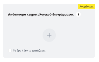 Εδώ βλέπετε όλα τα απαιτούμενα έγγραφα που πρέπει να ανέβουν για να χτιστεί ο φάκελος της αγοραπωλησίας για την ολοκλήρωση της και τη σύνταξη συμβολαίου. Βάση των στοιχείων που εισάγονται εδώ, γίνεται συνεχής και αυτόματη καταμέτρηση όσων εγγράφων λείπουν ή έχουν ήδη υποβληθεί.