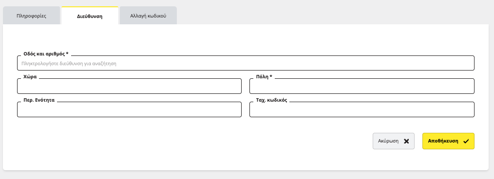 ℹ️ ΣΗΜΕΙΩΣΗ: Κάποια στοιχεία, όπως το email σας, δεν μπορείτε να τα επεξεργαστείτε. Αν όμως χρειάζεται να κάνετε αλλαγή μπορείτε να επικοινωνήσετε με την ομάδα υποστήριξης.