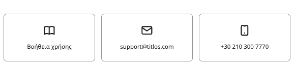 Μεταβείτε στη σελίδα Επικοινωνία της titlos.com. Συμπληρώστε τα στοιχεία σας στη φόρμα και στείλτε μας email για να έχετε άμεση επικοινωνία με την ομάδα υποστήριξης πελατών. Μόλις λάβουμε το αίτημα σας, θα σας απαντήσουμε άμεσα.